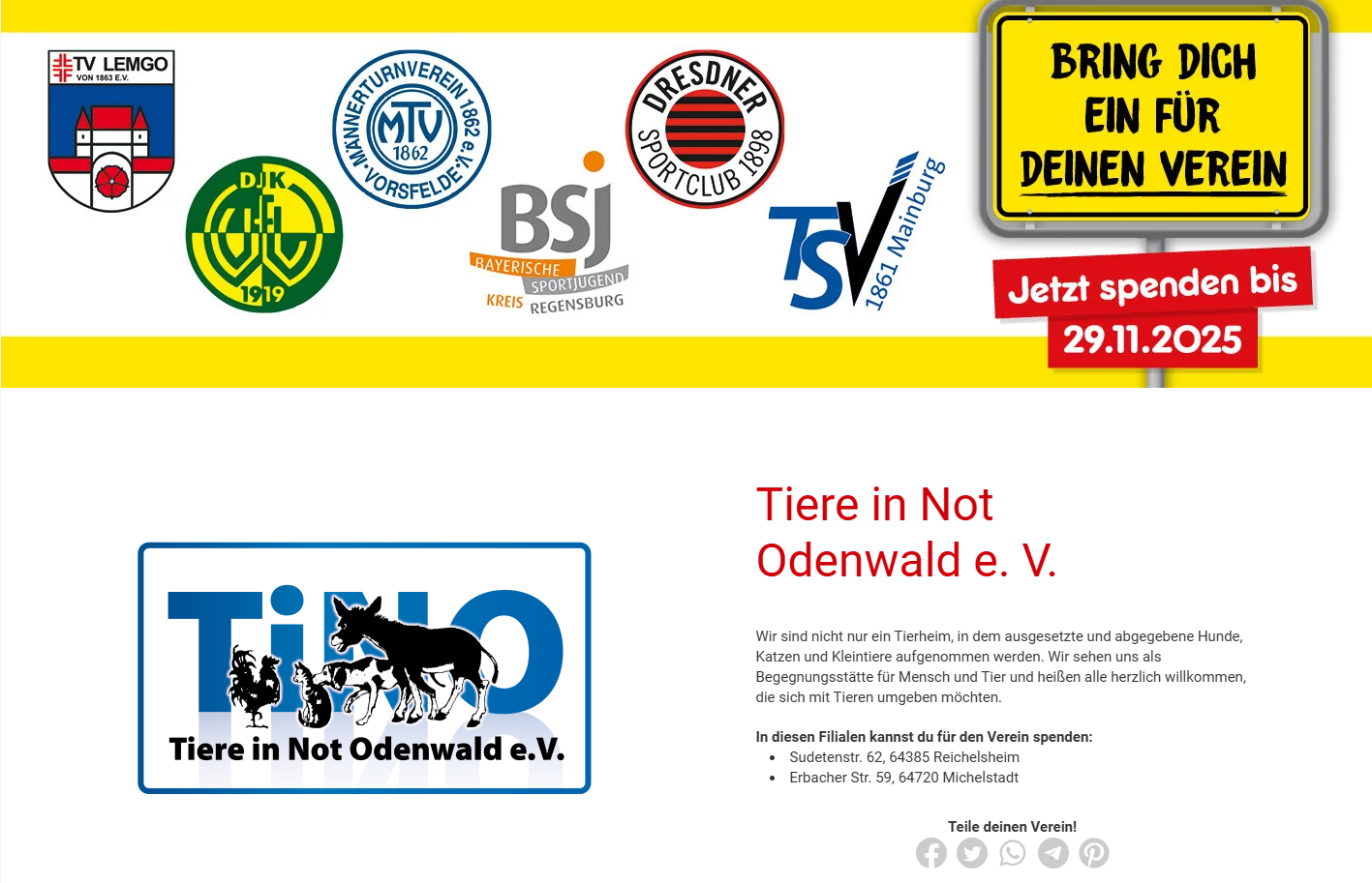 TiNO, Tiere in Not Odenwald e.V., ist ein junger, schnell wachsender und sehr leistungsfähiger Verein, der sehr pragmatischen, effektiven und modernen Tierschutz betreibt.