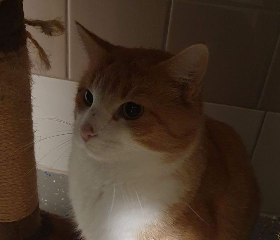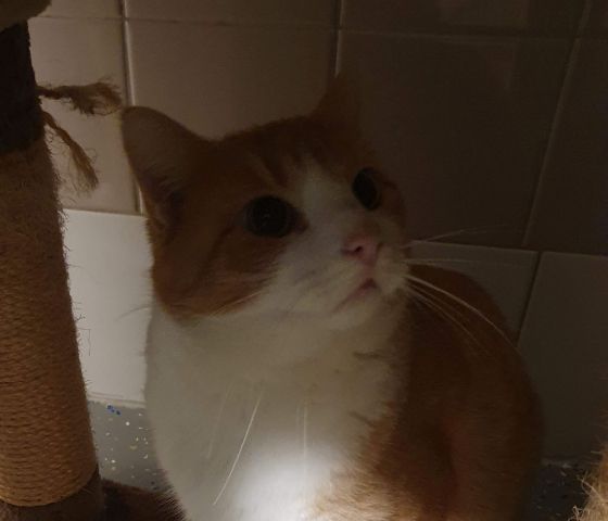 Er kommt mit den Katzen im Katzenhaus 4 gut zurecht und flüchtet lieber, wenn er Streit sieht - selbst wenn er gar nicht gemeint ist.