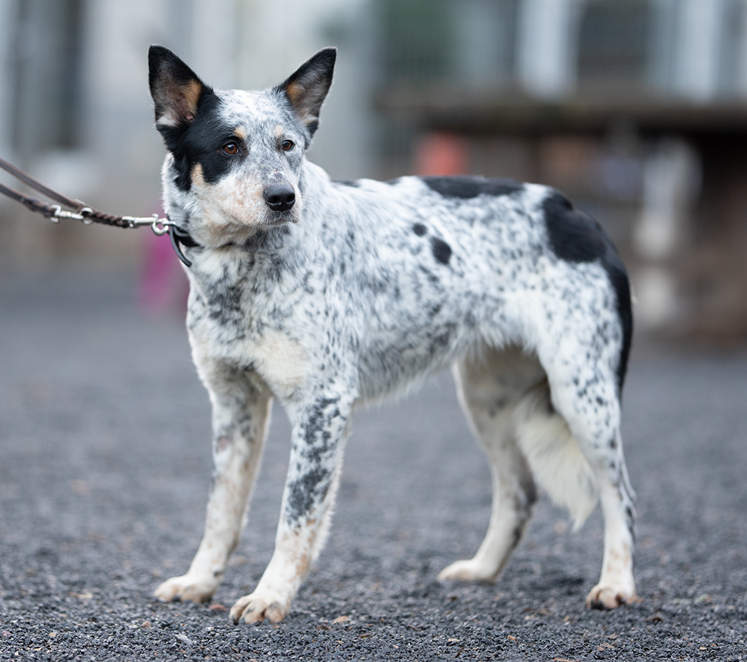 In der Hundegruppe im Hof zeigt sie sich als völlig problemlose Hündin, die adäquat und entspannt sozial kommunizieren kann. Ihre ängstliche, unsichere Seite zeigt sich dann, wenn man sie anleint, um mit ihr spazieren zu gehen. Dann wird aus der etwas zurückhaltenden Hündin im Hof ein Angsthund, der noch nicht viele Ideen dazu hat, sich am Menschen zu orientieren und gemeinsam mit ihm neue Situationen zu meistern. Flo steht noch ganz am Anfang, was das Gehen an der Leine, das Kennenlernen von alltäglichen Reizen und die Kooperation mit dem Menschen angeht. Flos neue Menschen sollten Spaß daran haben, sie davon zu überzeugen, dass man sich auf Menschen verlassen kann und man gemeinsam mit ihnen die Welt da draussen erkunden kann. Auch im häuslichen Bereich ist mit einer gewissen Eingewöhnungszeit zu rechnen – neben der für sie neuen ständigen Nähe zum Menschen werden z. B. auch Fernseher, Radio, der startende Staubsauger ggf. Herausforderungen für sie darstellen. Ganz sicher kennt sie das Leben im Haus so nicht, so dass sie wahrscheinlich auch nicht stubenrein sein wird.