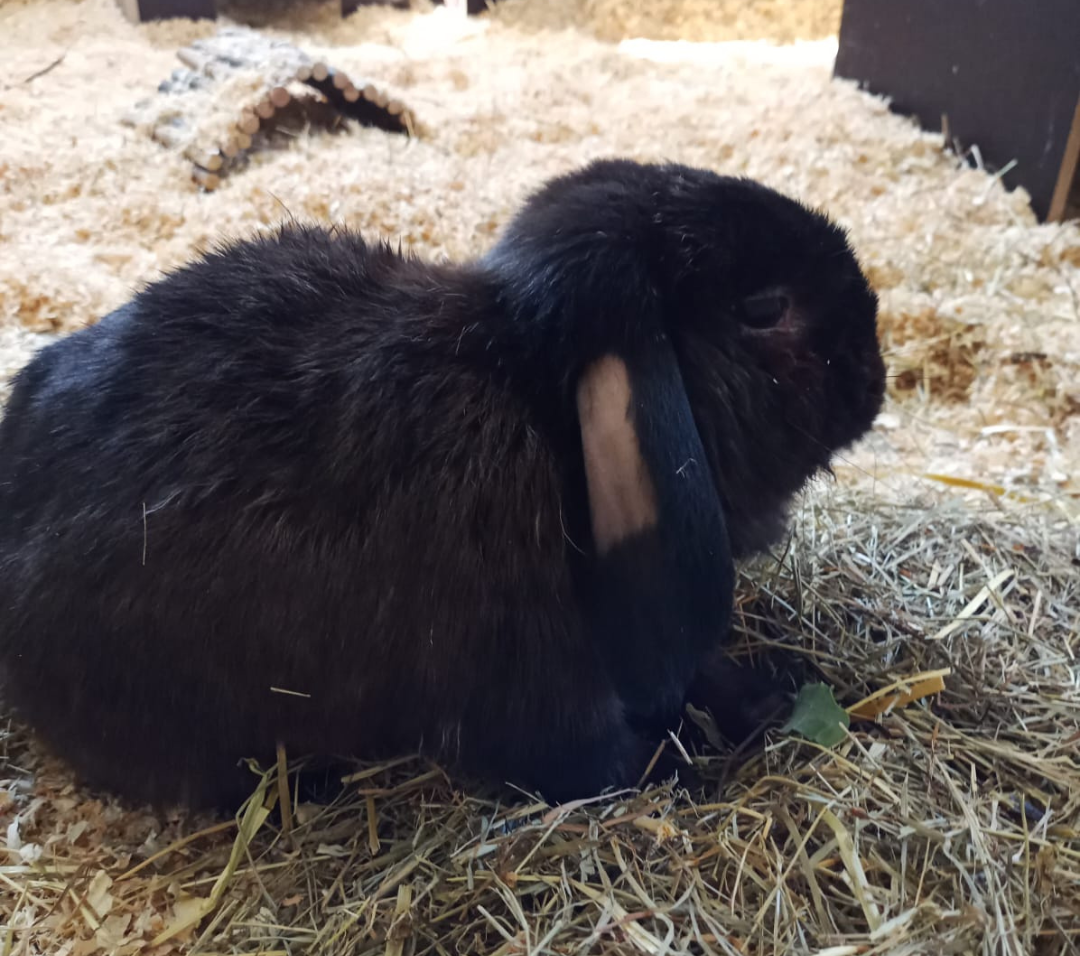Hoppel kam über eine Privatabgabe zu uns. Er hat eine massive Zahnfehlstellung und benötigt ständige tierärztliche Betreuung. Deshalb suchen wir für ihn einen Platz bei Haltern, die bereit sind, sein Futter entsprechend aufzubereiten und regelmäßige Zahnkontrollen durchführen zu lassen. Am besten wäre ein Platz im direkten TiNO-Umfeld, damit unsere Tierärztin Stefanie Bissbort ihn weiterhin medizinisch versorgen kann.