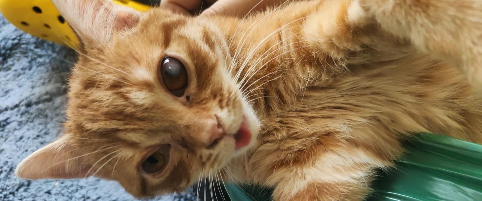 Hubert kam als Fundtier mit Katzenschnupfen infiziert. Vermutlich hatte er als Baby auch eine Herpesinfektion, deshalb ist seine Bindehaut verwachsen, ein Herpesvirus war aber aktuell im Test nicht mehr nachweisbar. Hubert kommt super klar, er kann sehen und beweist das mit Kratzbaumakrobatik. Außerdem hat er zusammen mit uns den Katzenschnupfen prima bekämpft. So besonders wie das Wesen dieses liebevollen kleinen Kerls ist seine optische Erscheinung: die Zunge bleibt einfach nicht im Mund und seine Augen erinnern daran, dass es ihm nicht immer so gut ging wie jetzt.