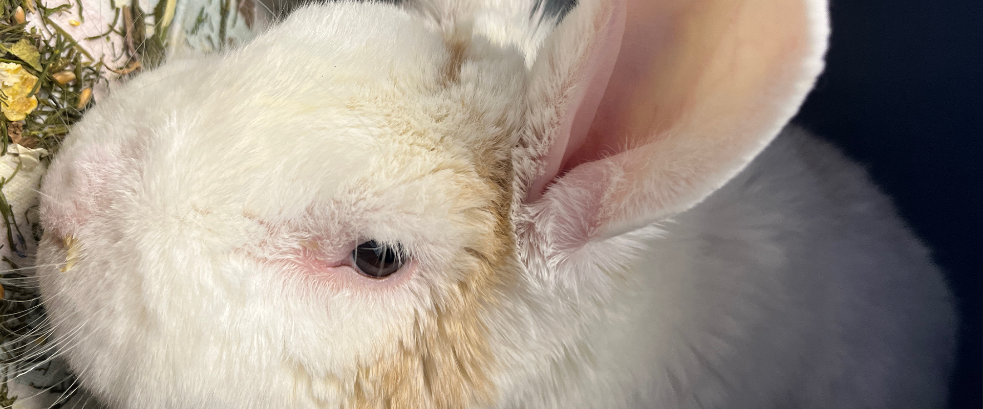 Jarda wurde wegen Umzug abgegeben und kam in einem katastrophalem Zustand zu uns. Er wurde gepäppelt und gepflegt. Wir mussten leider feststellen, dass er an Kaninchenschnupfen leidet und zumindest auf dem linken Ohr taub ist, da sein Trommelfell geplatzt ist. Dadurch hält er seinen Kopf extrem schief. Evtl. ist er auch komplett taub. Trotzdem ist er sehr lieb und genießt seine Streicheleinheiten. Er sucht ein neues Zuhause bei erfahrenen Kaninchenhaltern, die sich mit seiner Krankheit und seinem Handicap auskennen.