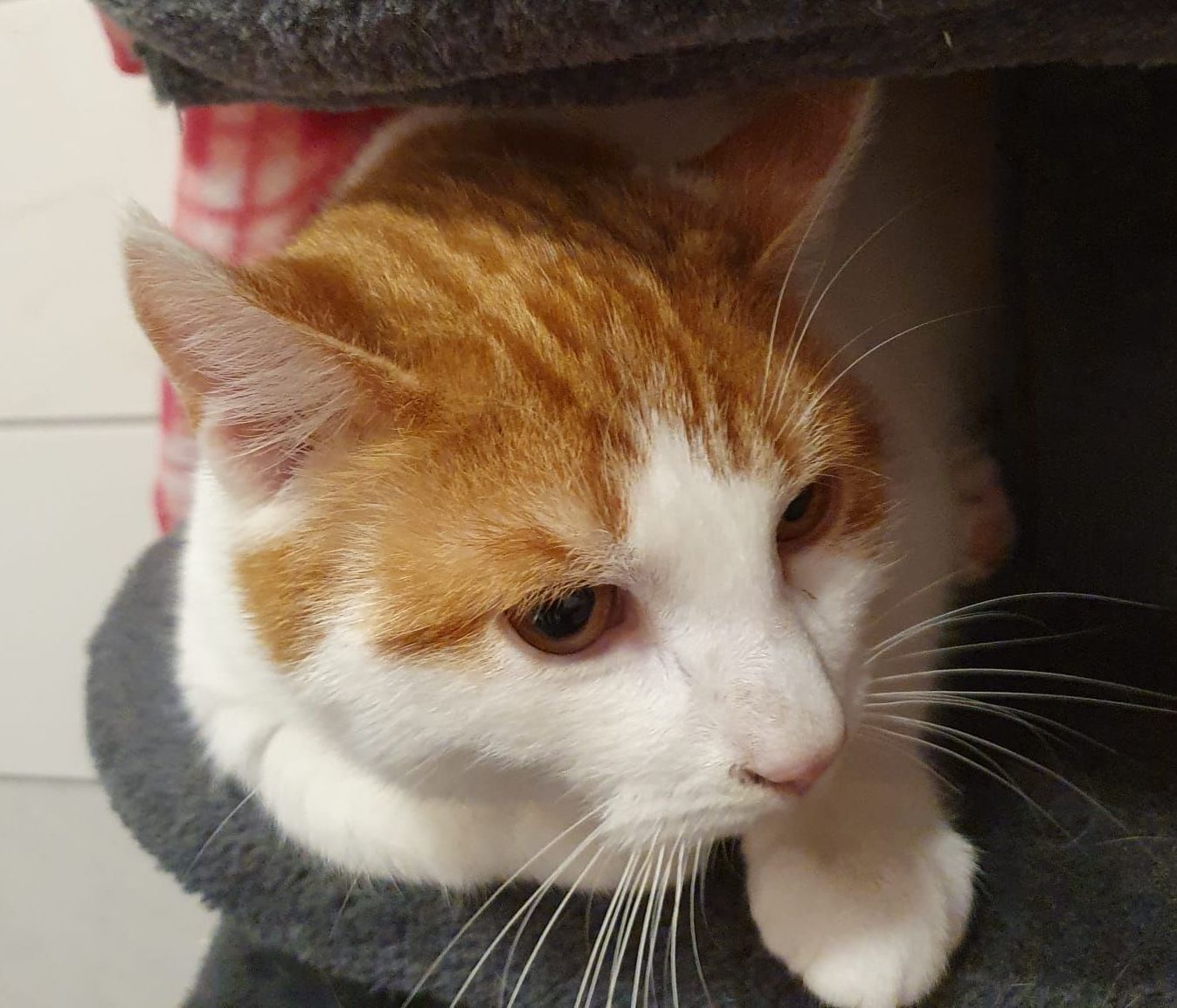 Sie haben das Abenteuer sehr gut verkraftet und zeigen sich als junge, einander sehr zugetane Kater, die gerne spielen, aber vom Wesen her total entspannt und scheinbar durch nichts zu erschüttern. Bei der Fotosession saßen sie einander gegenüber in einem Kratzbaum und schienen sich wie ein altes Ehepaar über Blicke zu verständigen.