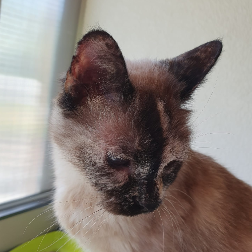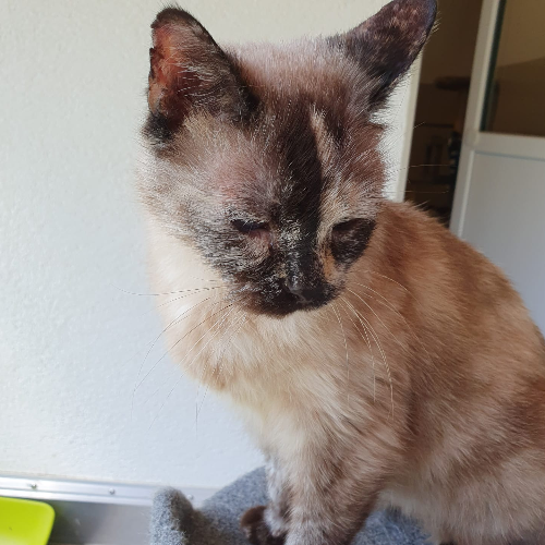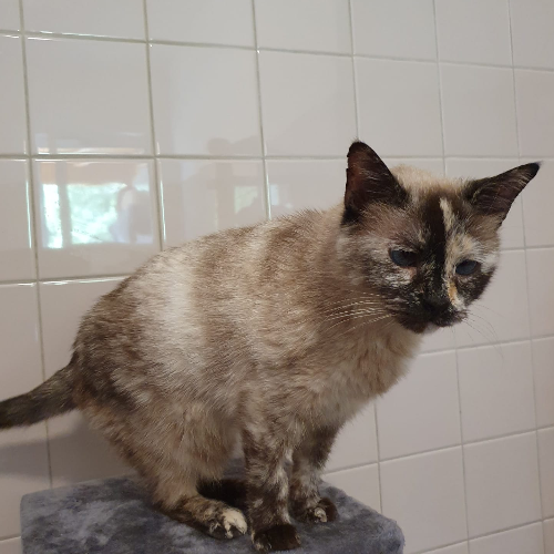 Lily und Kimba sind zwei ältere Katzen, die aus familiären Gründen bei uns abgegeben wurden. Die zwei sind etwas außergewöhnlich: Lilys Fellzeichnung hat die Farben einer Siamkatze, aber ein Schildpattmuster, was in Kombination mit ihren blauen Augen sehr apart aussieht. Bei Kimba hat wohl ein Britisch Kurzhaar mitgemischt, sie hat einen etwas kräftigeren Kopf und Körper als „ganz normale“ Hauskatzen. Auch bei ihr ist das Fell schildpatt, aber in sehr hellen Farbtönen.