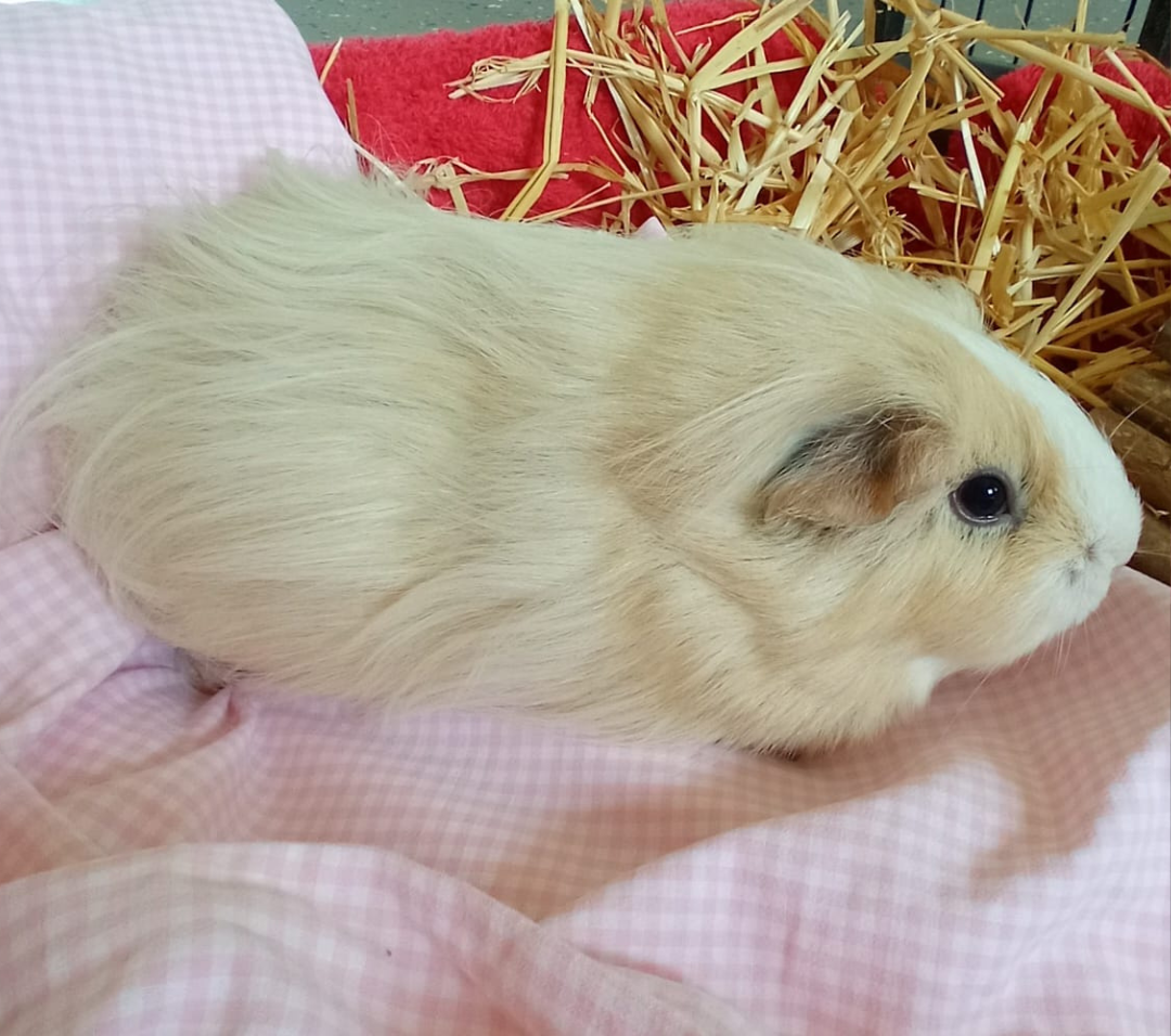 Merle wurde gemeinsam mit drei weiteren Meerschweinchen bei uns abgegeben. Die vier haben zusammen in einer Gruppe gelebt. Schön wäre es, wenn die vier auch wieder gemeinsam ausziehen dürften, ist aber kein muss.