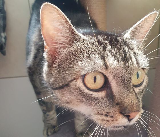 Mia ist eine sehr gute Mutter und hat ihre Kinder fest im Griff, man merkt ihr aber an, dass sie sich ein Zuhause wünscht, in dem sie einfach nur ein schönes Leben genießen kann, ohne sich ständig um irgendwas kümmern zu müssen. Mia ist sehr lieb und zugewandt, kommt sofort, um sich Streicheleinheiten abzuholen, schaut dann aber mit ihren großen, ausdrucksvollen Augen aus dem Fenster - sie möchte schon gerne wieder an der frischen Luft in der Sonne liegen.