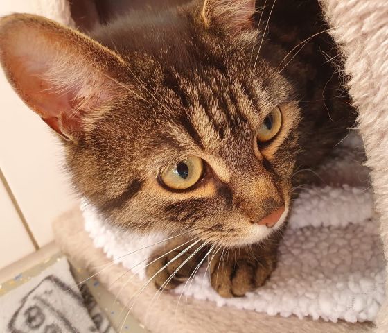 Fridolin und Mozart sind gerade erst bei TiNO angekommen und noch etwas skeptisch, was die neue Umgebung anbelangt. Die beiden wurden wegen Zeitmangel abgegeben. Betritt man jedoch ihr Zimmerchen und schaut, wo sie sich versteckt haben, kommen zwei süße Katerköpfe zum Vorschein, die neugierig schauen, wer da zu Besuch kommt. Kraulen lassen sie sich gerne, da sagen sie nicht nein, sie kennen nichts Böses und sind sehr zutraulich und lieb.
