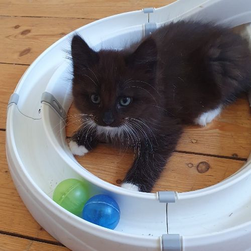 Jetzt ist sie fein gewachsen und hat sich gefühlt über Nacht in eine junge Dame mit halblangem glänzendem Fell verwandelt. Ihr Puschelschwänzchen und ihr supersüßes, freches Gesicht machen sie zu etwas ganz Besonderem.