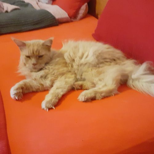 Simba ist ein Maine Coon red-tabby classic. Er hört auf seinen Namen und ist ein unkomplizierter, verschmuster und zutraulicher Kater.