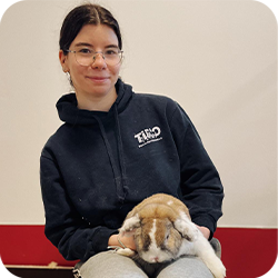 Seit November 2021 ist Janis Teil unseres Teams. Vor allem an den Wochenenden bei geringer Besetzung hilft sie tatkräftig im Kleintierhaus und im Katzenhaus aus.