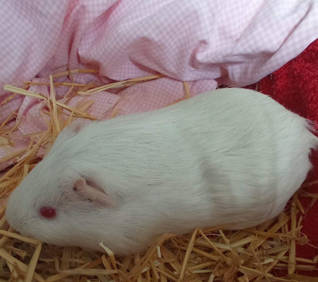 Anna wurde gemeinsam mit drei weiteren Meerschweinchen bei uns abgegeben. Die vier Damen haben in einer Gruppe gelebt, daher würden wir uns wünschen, dass sie auch gemeinsam ausziehen dürfen – es ist aber kein Muss.