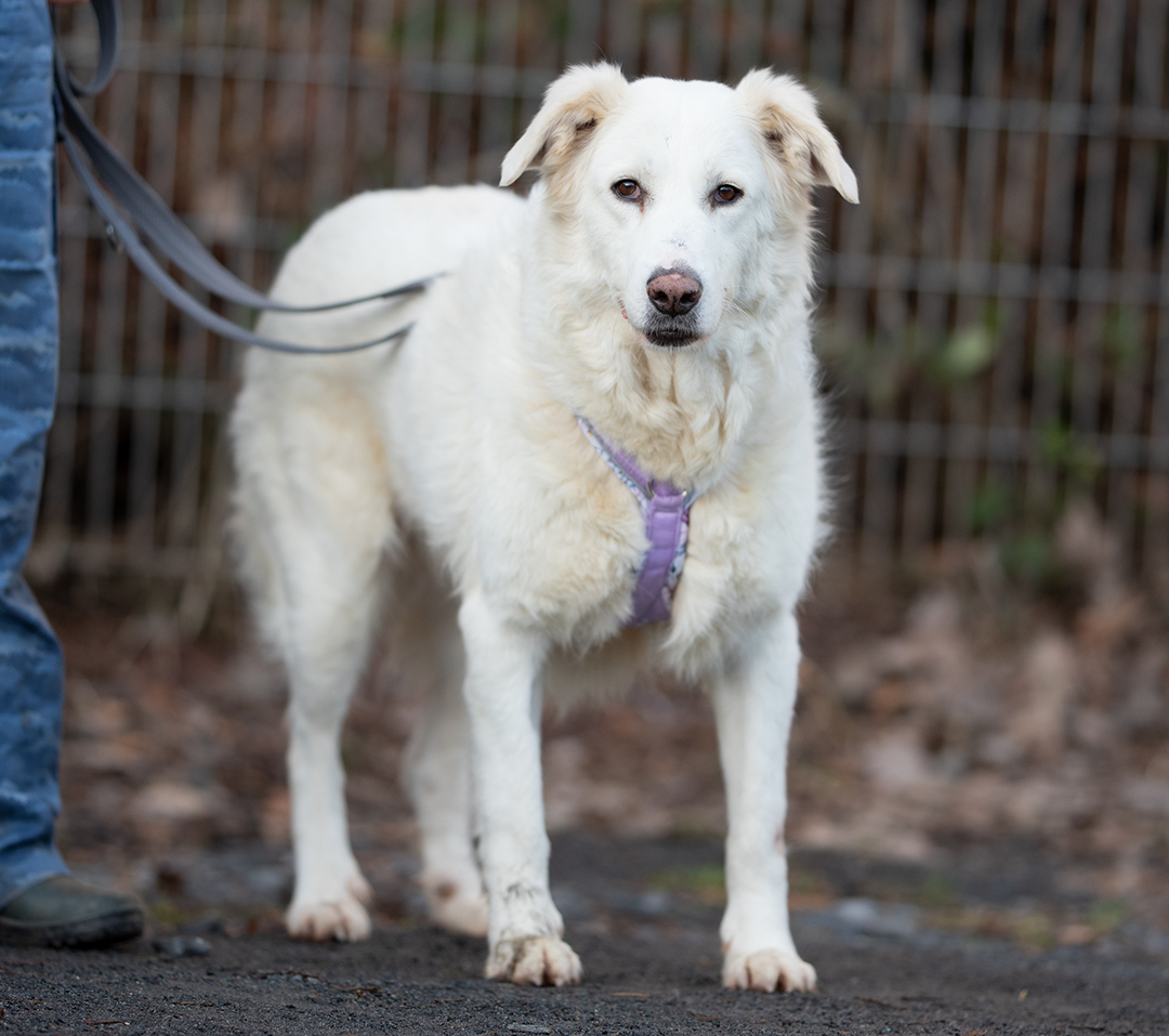 Bianca haben wir von einem italienischen Partnerverein übernommen. Sie ist überaus freundlich mit allen Menschen und möchte am liebsten den ganzen Tag gestreichelt werden. Bianca läuft tagsüber unauffällig in der Hofgruppe mit.