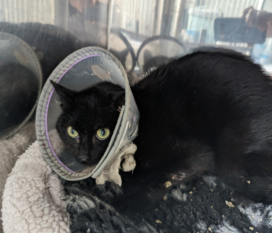 "Metternich" haben wir den unkastrierten, verletzten Kater genannt. Mit einem offenen Rücken wurde er gebracht. Die Wunde wird noch versorgt.