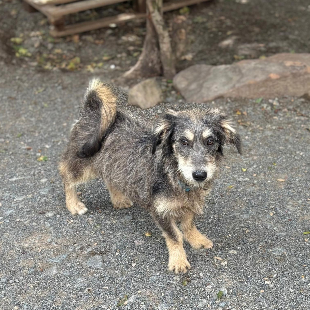 Hugo ist klein, wiegt gut 10 kg und irgendwie sieht er ein bisschen aus wie ein verfärbter Rauhaardackel mit zu langen Beinen. Er ist ein lustiger, frecher Kerl ohne Berührungsängste, was Menschen und Hunde angeht. Definitiv hat er Erziehungsbedarf, das Herz am rechten Fleck und geht gerne fröhlich lachend durchs Leben. Wer Spass daran hat. einem Junghund das Leben zu zeigen, ist bei Hugo genau richtig und kann sich in Konsequenz üben.