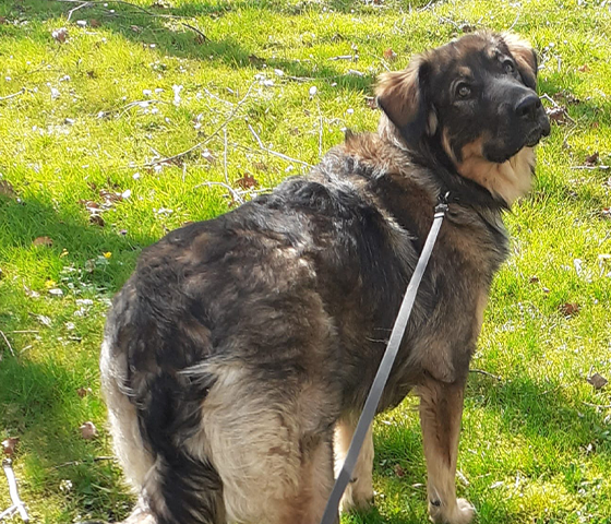 Die junge Hündin Luna kam als Privatabgabe zu uns. Viel wissen wir über sie nicht, außer dass sie sehr bellfreudig und aufgeschlossen ist. Sie hat in ihrem früheren Zuhause mit zwei Rüden zusammengelebt und kommt auch bei uns im Hof mit den Hunden gut zurecht.