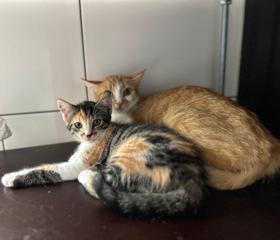 Die M's wurden zusammen mit ihrer verwilderten Mutter aufgelesen und machten uns lange Sorgen, denn sie waren ein wenig kümmerlich. Nun sind sie doch gut gewachsen, haben die erste und zweite Impfung überstanden und können umziehen in ein neues Zuhause. Wie alle Kitten vermitteln wir sie nur zu zweit oder zu einer altersgemäß passenden Katze. Sie sind Fremden gegenüber noch etwas vorsichtig - das haben sie von ihrer Mama so gesagt bekommen und das ist ja auch für ein kleines Kitten nicht ganz verkehrt. Mit ein paar Tagen Geduld werden aus ihnen aber ganz zugewandte Katzenkinder. Viel Unsinn stellen sie jetzt schon an.