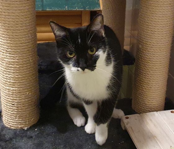 Die Tierheimsituation trägt noch dazu bei, Merle hält bei Fremden erstmal etwas Abstand. Verlässt man jedoch das Katzenzimmer, sitzt sie sofort an der Glastür und beobachtet neugierig.
