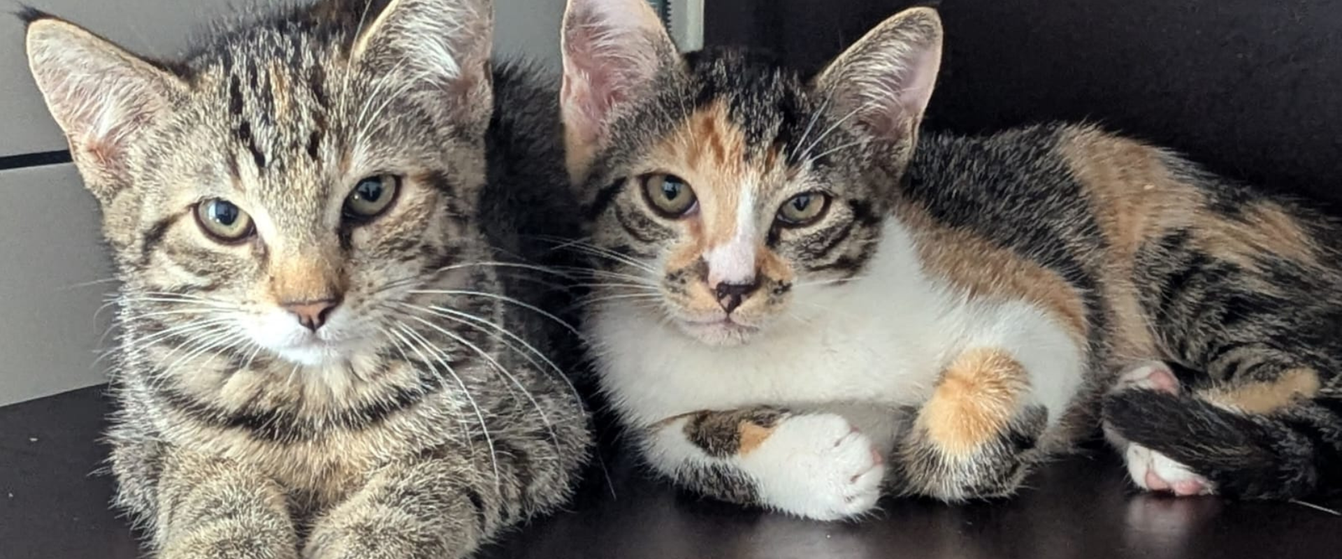 Die M's wurden zusammen mit ihrer verwilderten Mutter aufgelesen und machten uns lange Sorgen, denn sie waren ein wenig kümmerlich. Nun sind sie doch gut gewachsen, haben die erste und zweite Impfung überstanden und können umziehen in ein neues Zuhause. Wie alle Kitten vermitteln wir sie nur zu zweit oder zu einer altersgemäß passenden Katze. Sie sind Fremden gegenüber noch etwas vorsichtig - das haben sie von ihrer Mama so gesagt bekommen und das ist ja auch für ein kleines Kitten nicht ganz verkehrt. Mit ein paar Tagen Geduld werden aus ihnen aber ganz zugewandte Katzenkinder. Viel Unsinn stellen sie jetzt schon an.