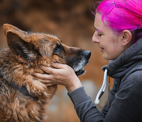 Vor einigen Jahren haben wir sie abgemagert mit Zwangsstörungen von einem befreundeten Tierschutzverein übernommen, weil wir mit Hundegruppen arbeiten und ihr die Hunde helfen sollten. Das Schäferhunde sehr stressanfällig sind, wissen die meisten. Riva hat es nicht geschafft, alleine in einem Zwinger zu wohnen.