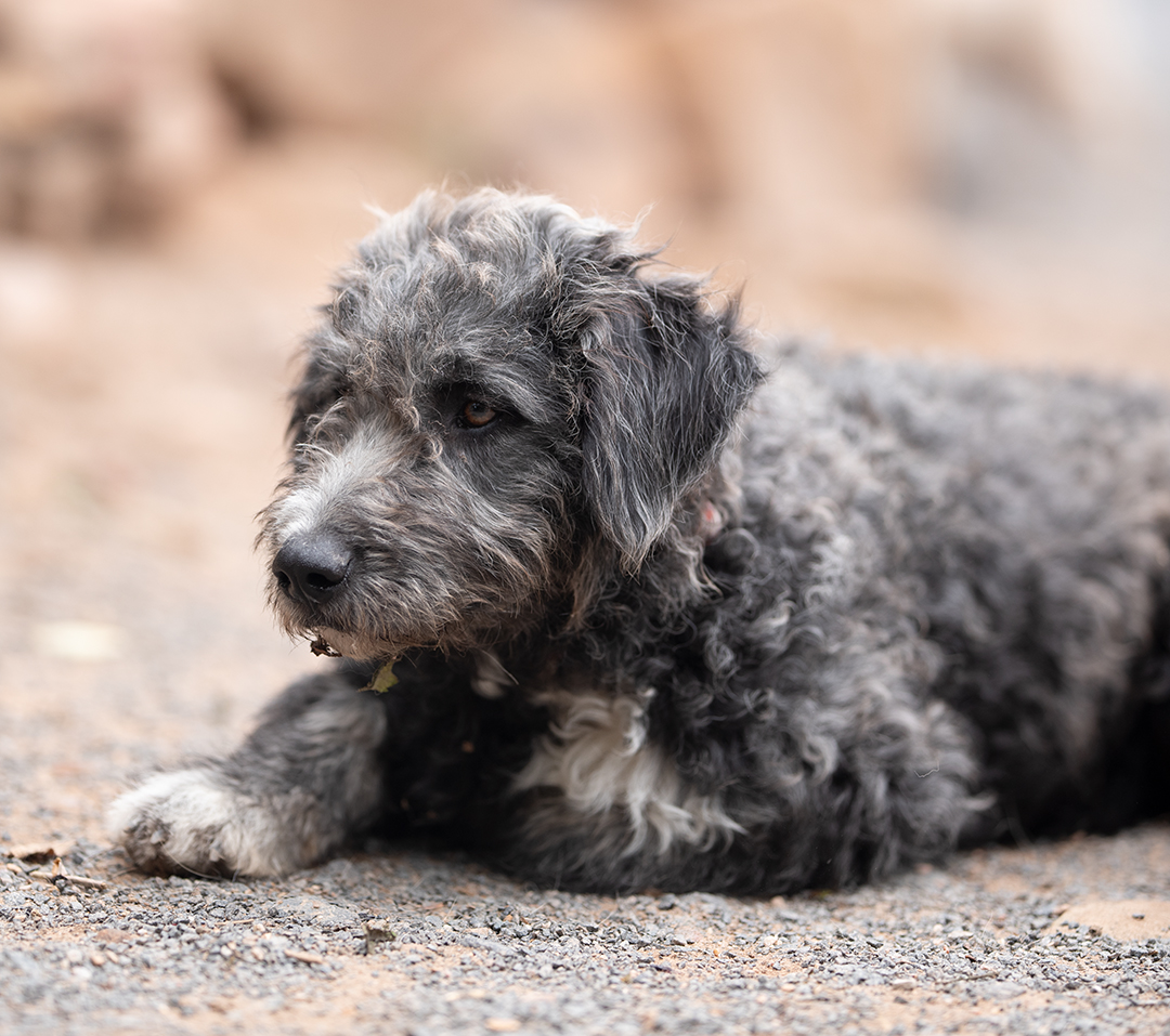 Die kniehohe Shippy ist eine mit allen Menschen und Hunden sehr freundliche, junge Hündin. Erziehungsmäßig gähnt da noch ein großes Loch, welches jetzt von ihrer neuen Familie zu füllen ist. Obwohl an der Leine laufen schon ganz gut klappt, ist alles noch sehr ausbaufähig. Shippy ist jung und schlau und wird bestimmt alles ganz schnell lernen. Ihr Fell ist so ein typisches Pudel-Fell, bedarf also erhöhter Pflege, wie regelmäßigem Bürsten und Scheren.