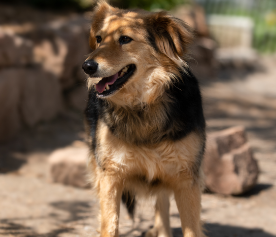 Die mittelgroße (21kg) Hündin Talin ist noch ein wenig schüchtern.