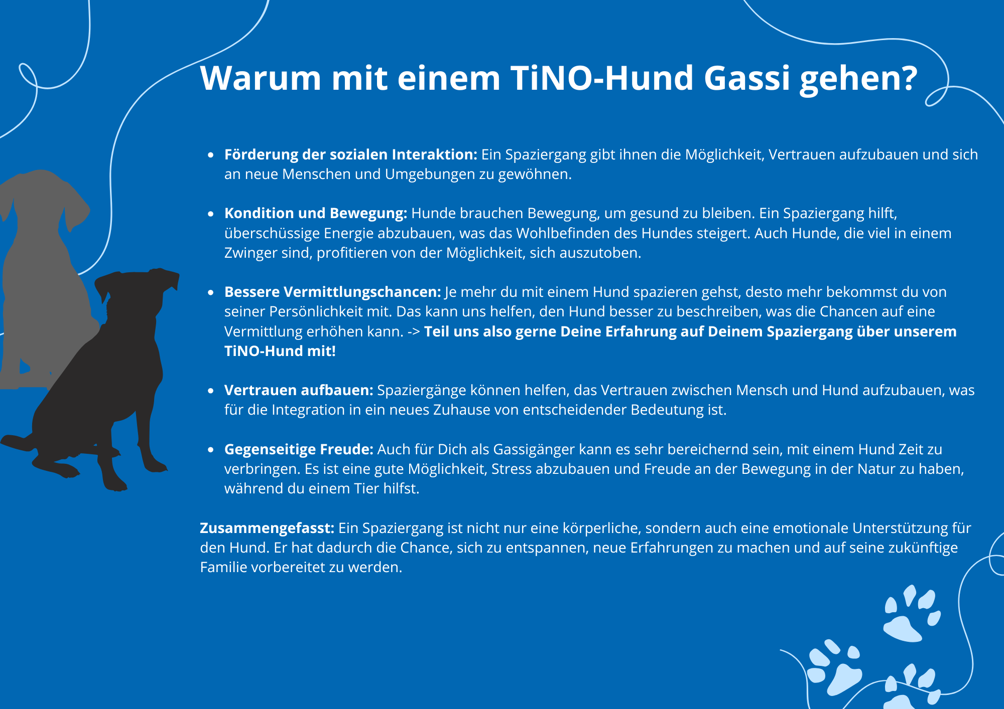 📌 Wenn Du das erste Mal mit einem TiNO-Hund Gassi gehst, musst Du unsere Gassigängervereinbarung ausfüllen.