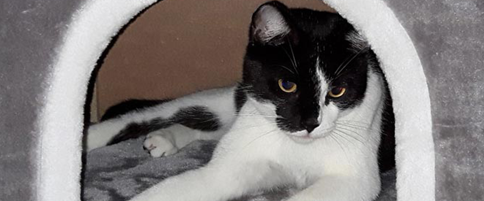 Als kleiner Babykater kam Benedikt zu TiNO und wurde mit einer Lungenentzündung sehr krank. Doch der kleine Kerl hat sich ins Leben zurückgekämpft und durfte auf eine Pflegestelle umziehen, um wieder ganz gesund zu werden. Ohne Folgeschäden blieb die Krankheit jedoch nicht, es wurde bei ihm eine Lungenfibrose (das ist eine bindegewebige Veränderung) festgestellt. Dadurch ist er anfälliger für Atemwegserkrankungen, hat öfter mal einen Hustenanfall und Schwierigkeiten beim Atmen.
